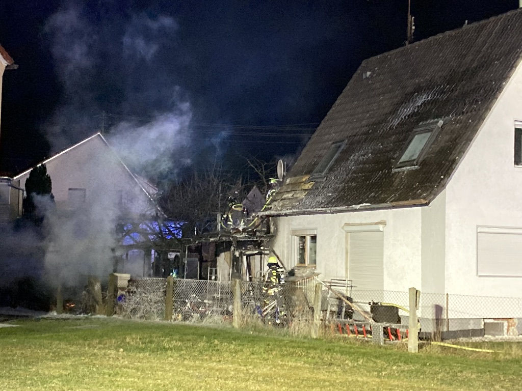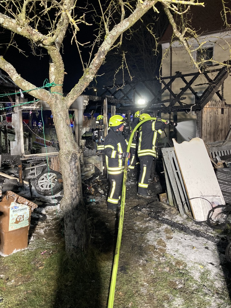 Am frühen Morgen des 01.01.2026 wurden die Feuerwehren zu einem gemeldeten Dachstuhlbrand mit Person in Gefahr in die Günzburger Edlhardstraße alarmiert. Ein Passant hatte den Brand einer Gartenhütte bemerkt und umgehend die Integrierte Leitstelle verständigt.